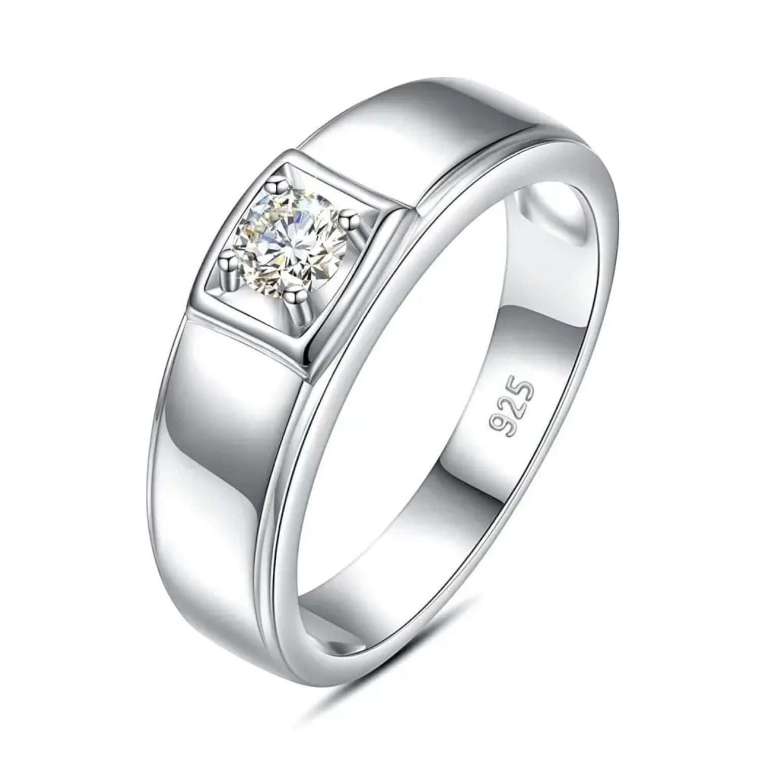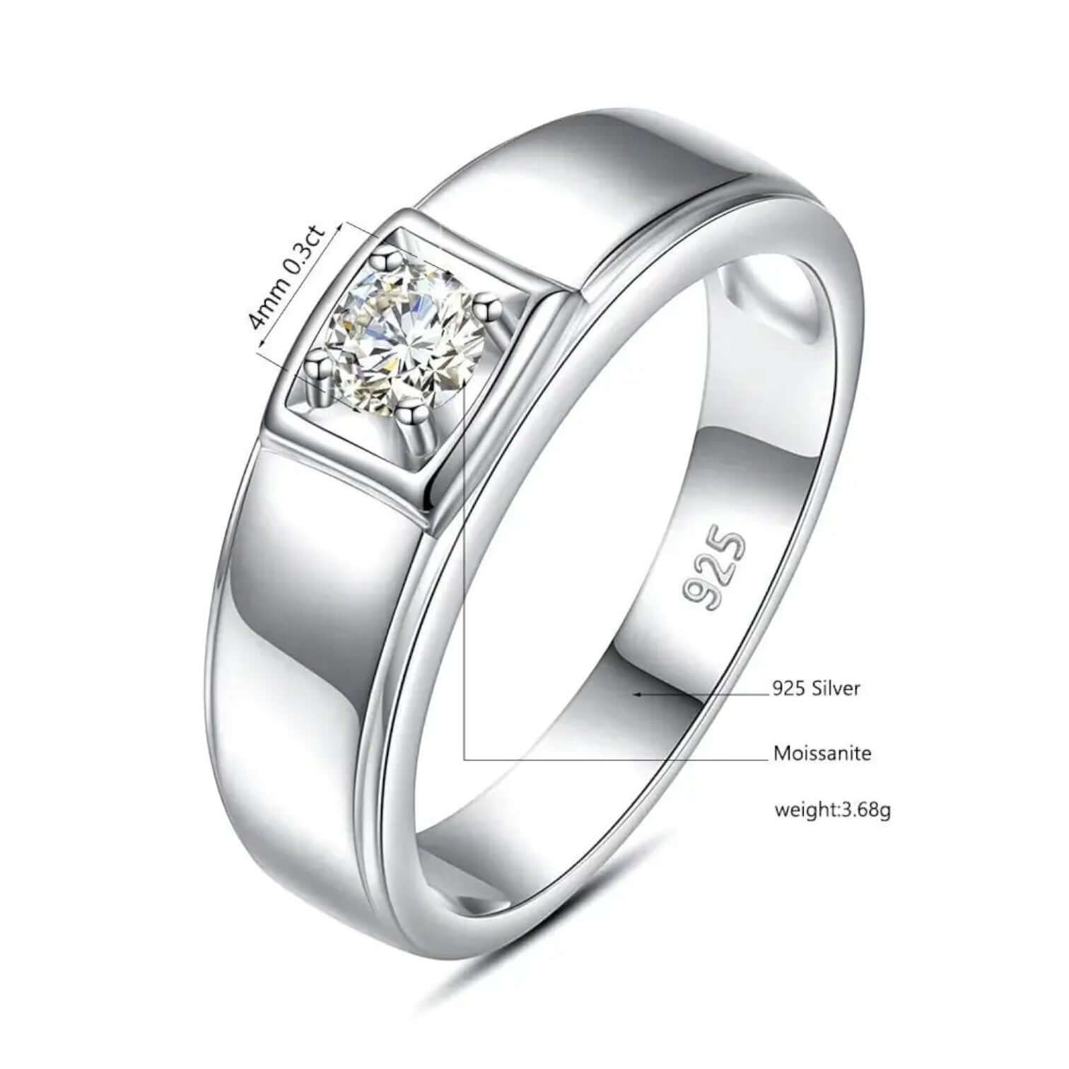Dieser Moissanit-Ring wurde für Männer entworfen, die klares Design und raffinierte Eleganz schätzen. Mit einem brillanten, runden Mittelstein bietet er außergewöhnliches Funkeln und bewahrt gleichzeitig eine minimalistische und moderne Ästhetik.