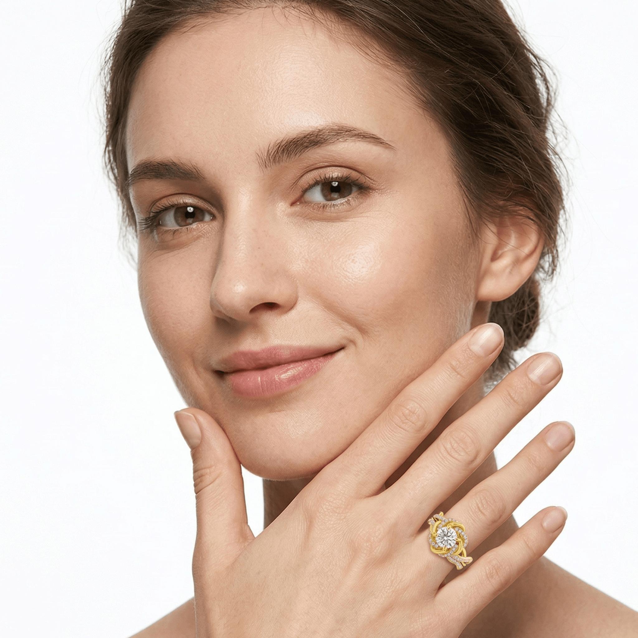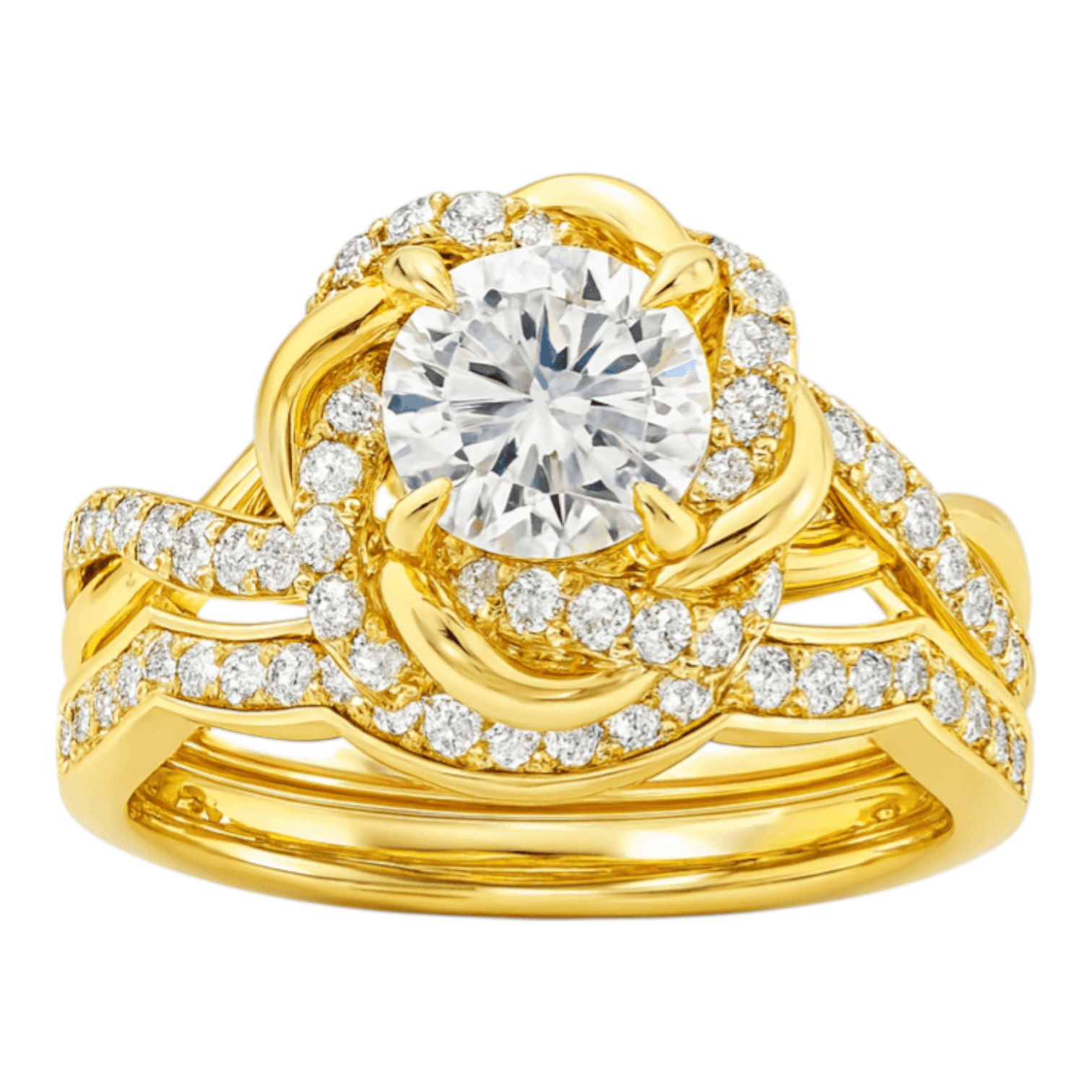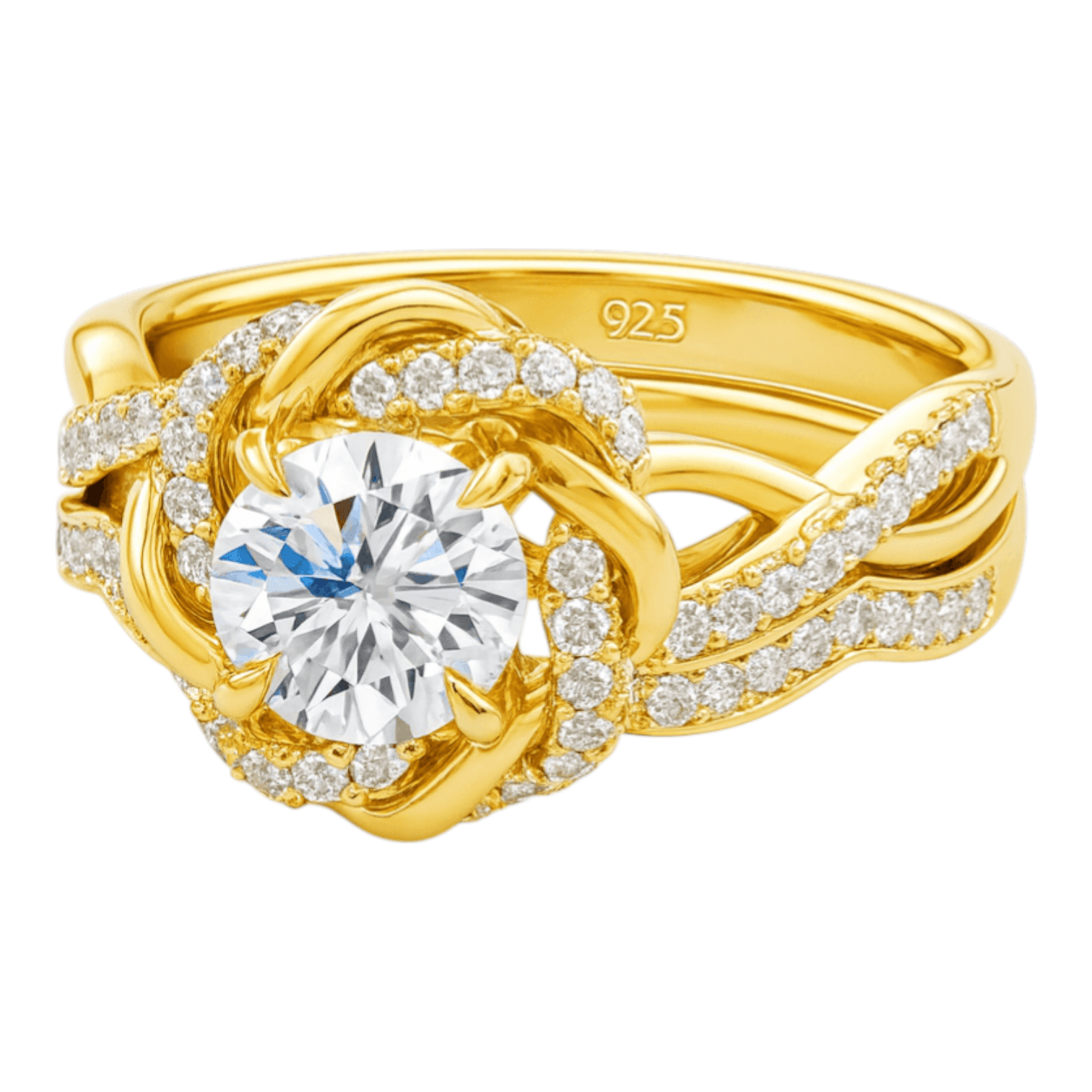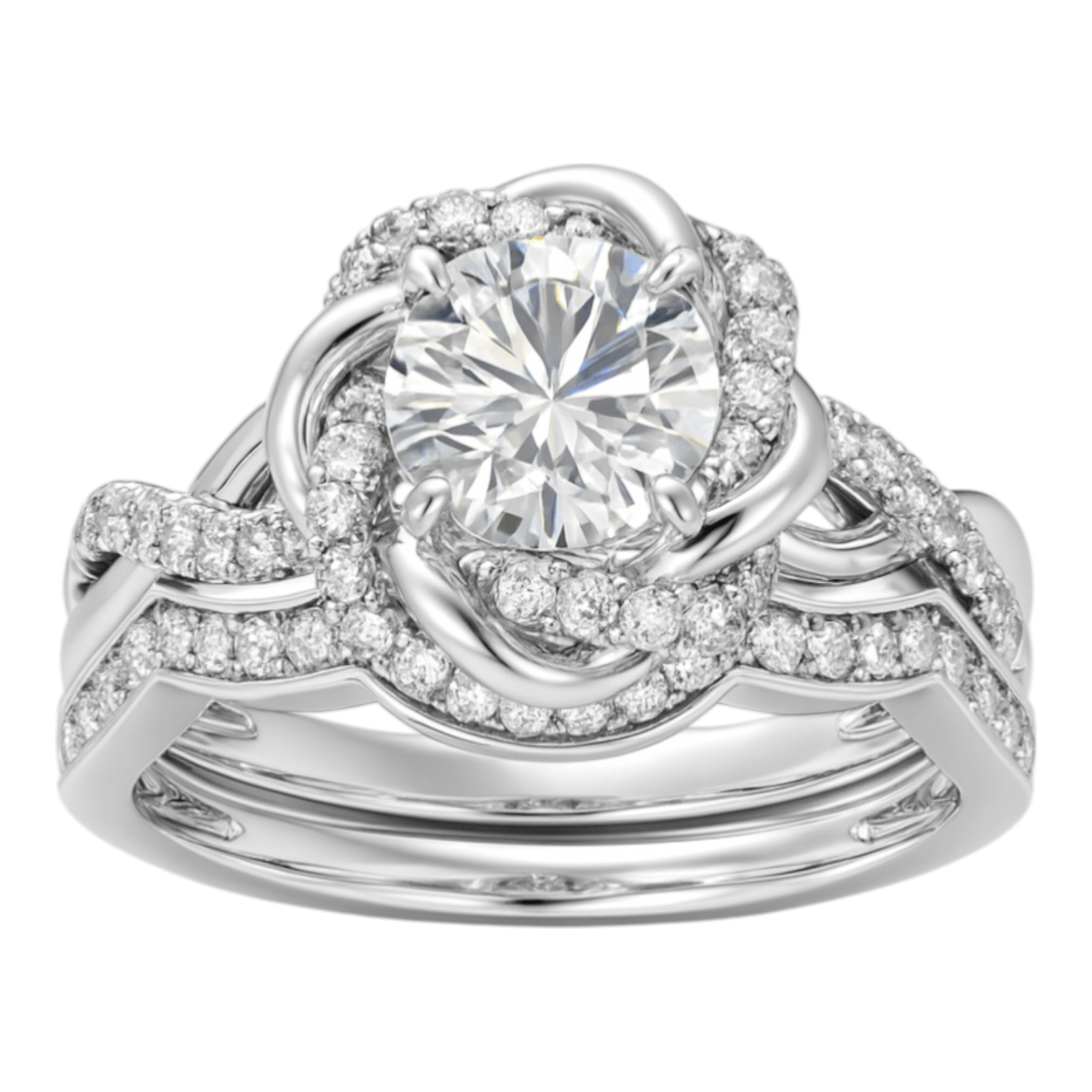 Steigern Sie Ihre Eleganz mit diesem atemberaubenden 2-teiligen Moissanit-Ring-Set, entworfen für diejenigen, die zeitlose Schönheit und Raffinesse schätzen. Gefertigt aus... Lesen Sie mehr