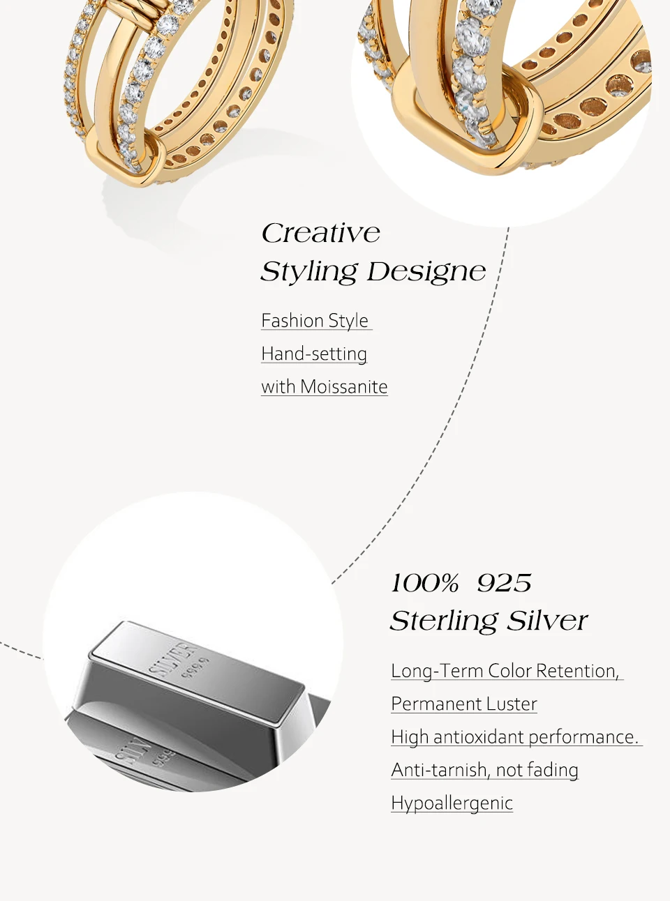 Drei-lagiger Moissanite Stapelring