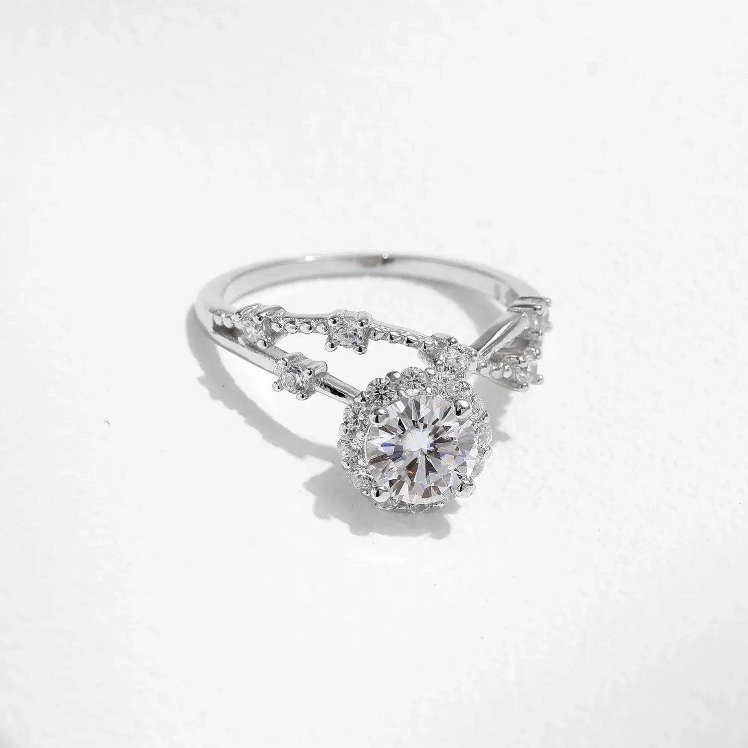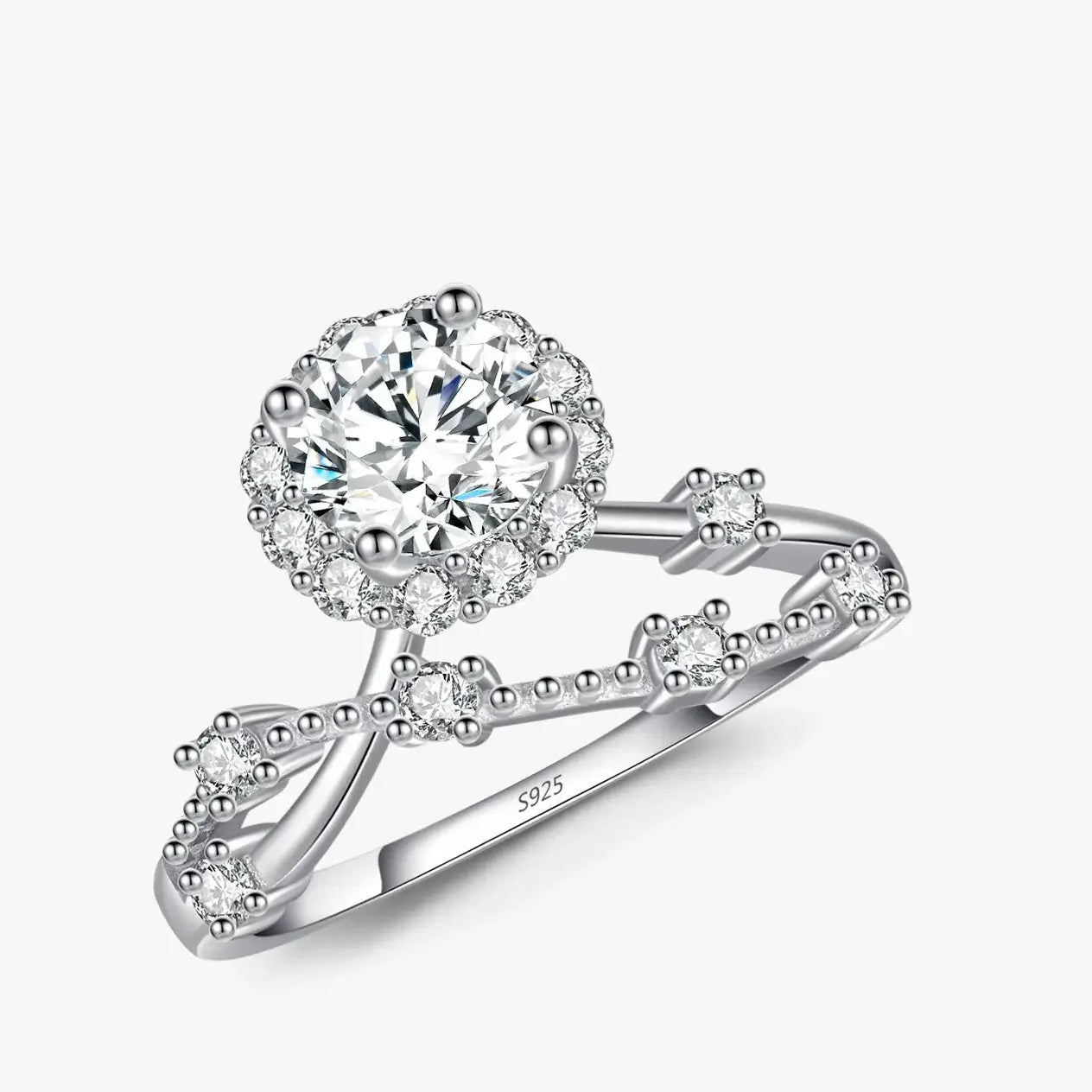 Elegant crown wedding ring crafted from 925 sterling silver, featuring a 0.8 ct round-cut D-color VVS1 moissanite in a refined... Read more